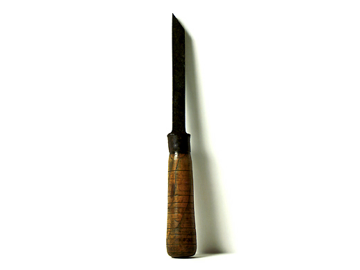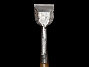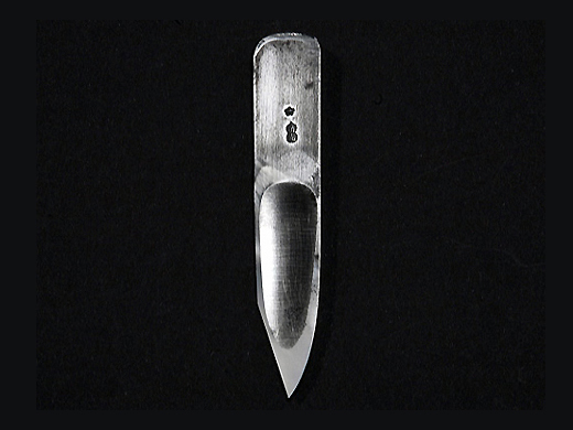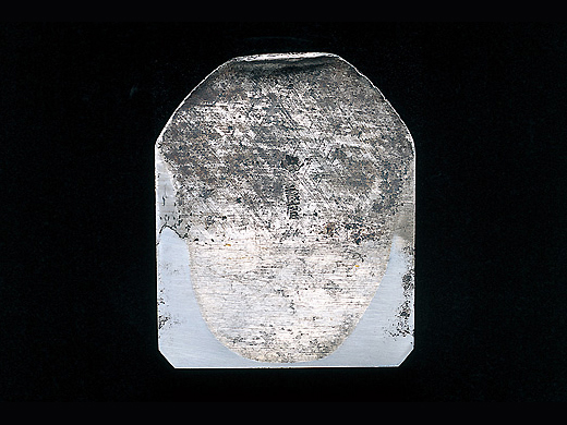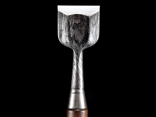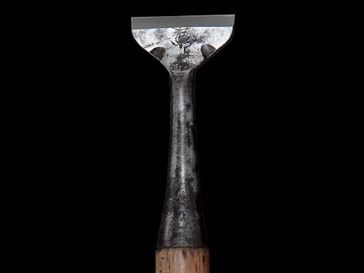 우메이치는 가가 백만석도 대장장이 기요코 7대째.다이쇼 5~6년에 오사카로 옮겨 후쿠시마에 산다.당시 ‘선작’으로 명성을 얻은 명공이다.1935년경 노령으로 대장장이를 그만뒀다.사진은 도랑이(측면)을 깎아내는 냄비의 칼날이다.
