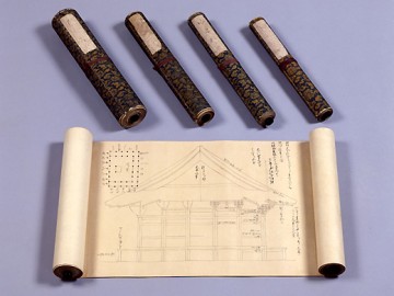 건축의 각 부 치수를 나누기 위한 방법(목할술)을 적은 비전서 형식의 두루에도 막부 소보청방 동량·카시와기가에 전해진 것으로, 1689년(1689)에 이베에 마사토라에 전수했다는 오서가 있다.전5권으로 「고쇼님」 「신사노베」 「불전노베」 「몬노베」 「타노베」로 되어, 에도시대의 건축 기술이나 목수 조직을 아는 데 있어서 중요한 자료이다.