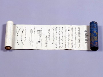 명공 지요쓰루 고레히데가 단련한 도구는 절정도 날카롭지만 가격도 높고 신선에 모실 정도라고 한다.그 완성을 안 목수·에도구마(카토 구마지로)은 면식도 없는데 간절히 소원을 담은 주문 소원을 대필시켜 호적 등본까지 동봉해 보냈다고레슈는 그의 심근을 받아 대입장 15정을 단련하고 기차임금을 마련해 야간에 오사카까지 신고하러 갔다고 한다.그 조준은 에도 곰 사후 전재로 손상됐지만 돌아와 본 박물관에 보존되게 됐다.