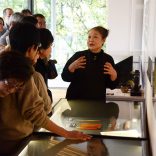 손님으로부터의 질문에, 한사람씩 정중하게 대답이 되는 이시모토씨.작품에서는 치밀함, 섬세함을 알 수 있지만, 평소에는 매우 친숙한 인품입니다. |