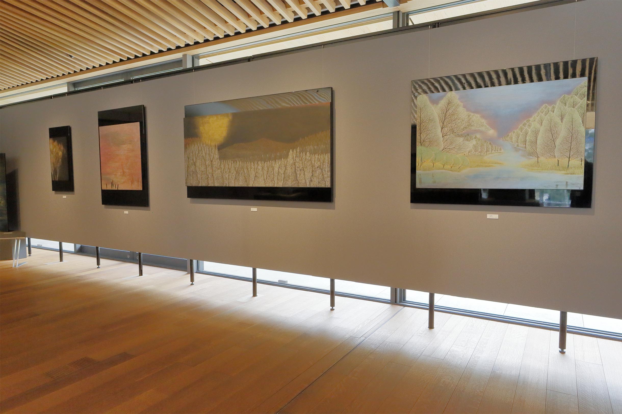 옻칠 패널 작품의 대부분은 기소의 풍경이 모티브가 되고 있습니다. |