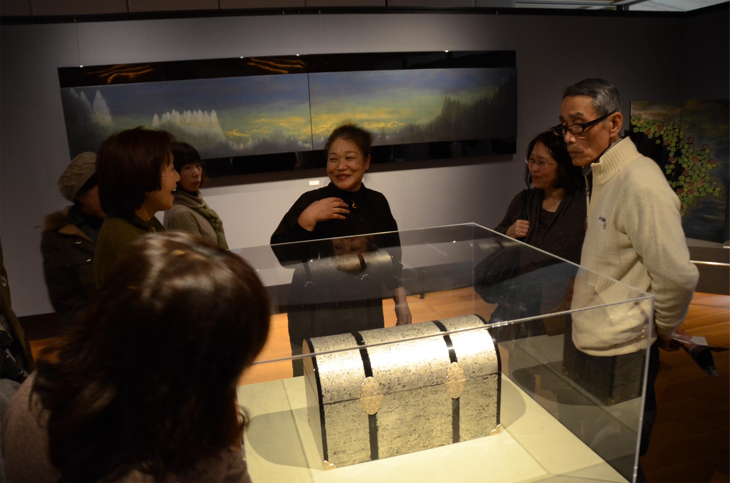 일시 2017년 1월 27일(금)・2월 12일(일) 13:30~14:10 회장 다케나카 목수도구관 1F 홀 강사 이시모토 아이코(칠예가) 「칠채 찬가전」개최를 기념해, 이시모토 아이코씨 자신에 의한 전시 해설이 개최되었습니다. |