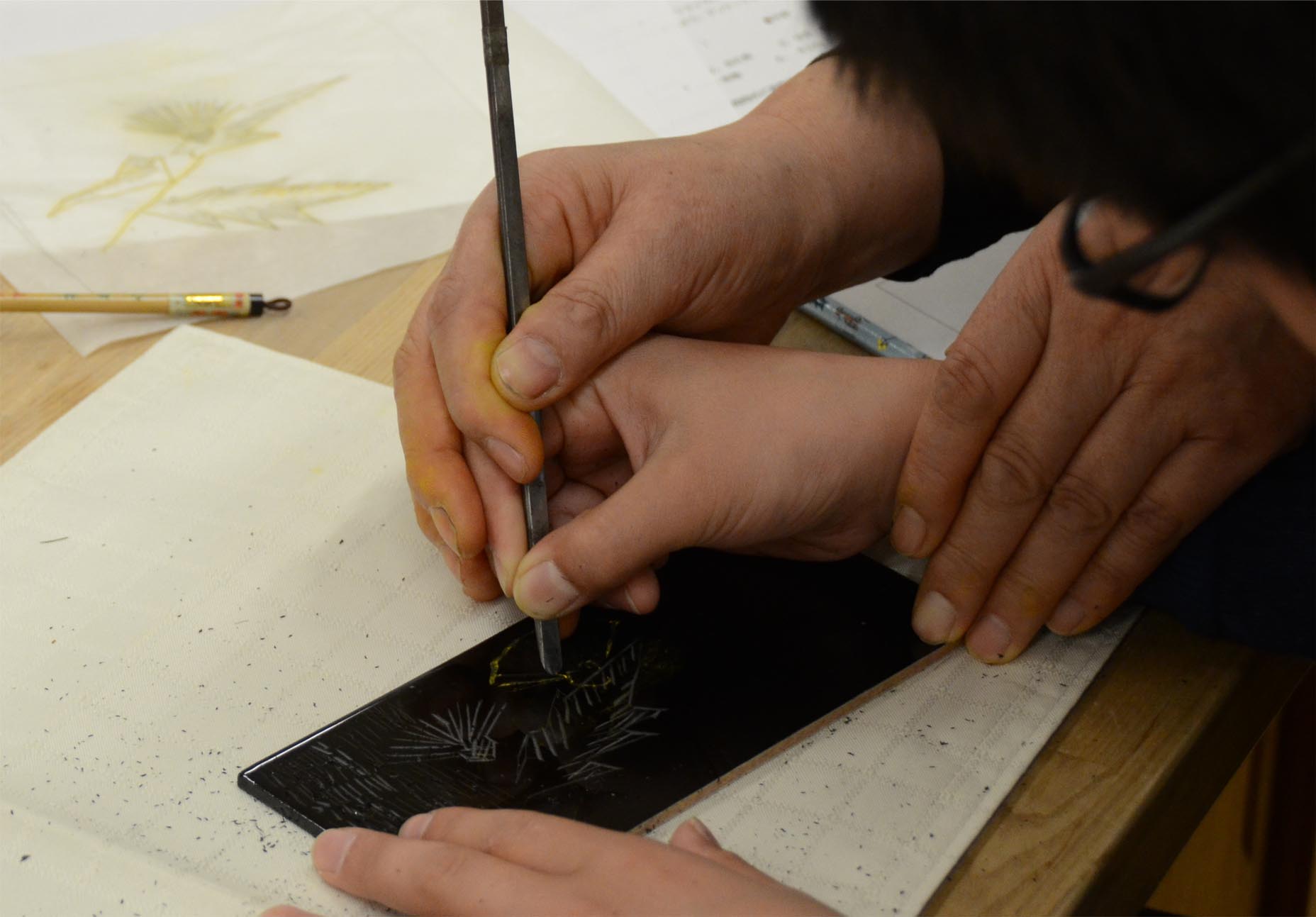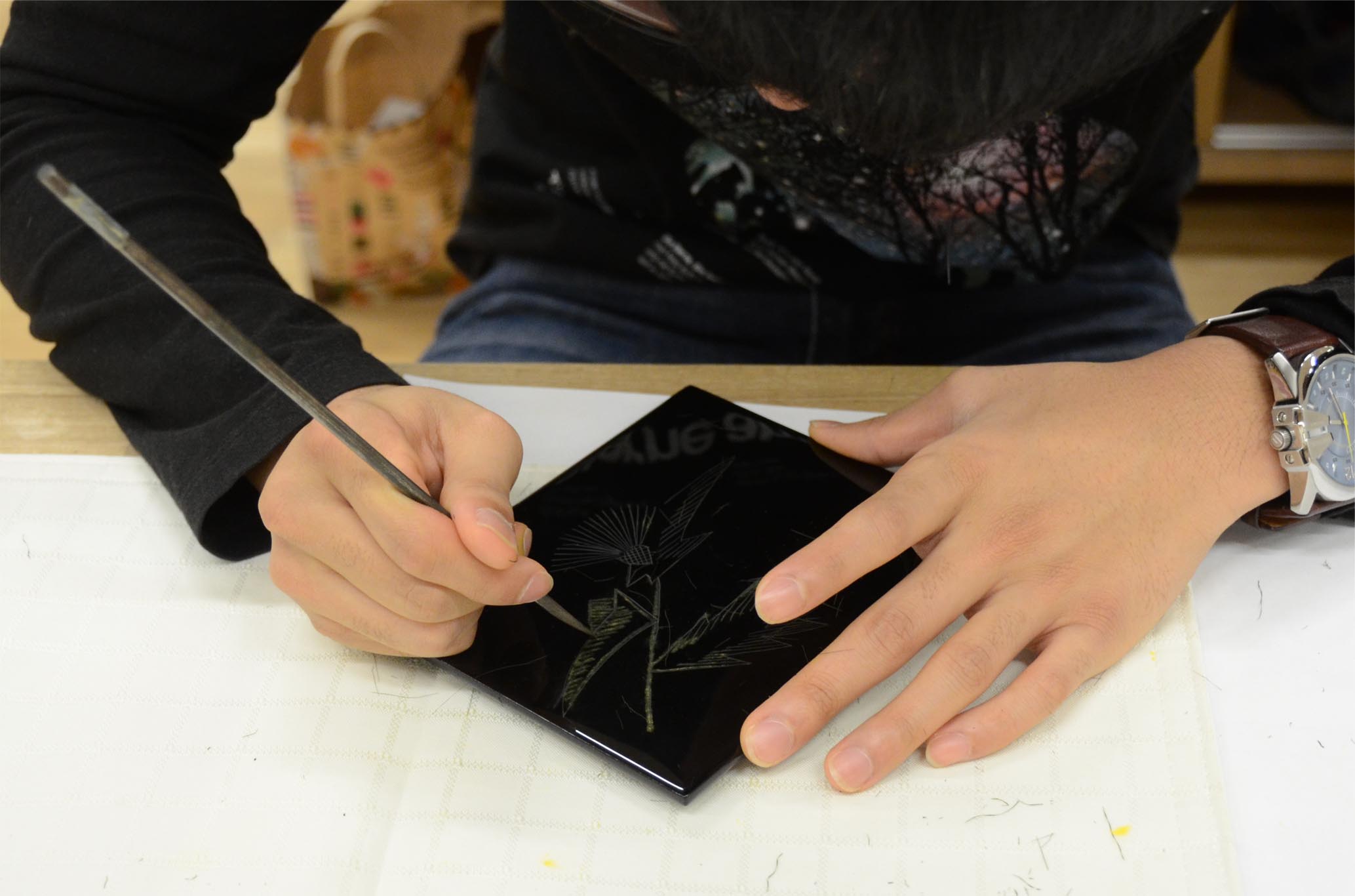 첫 작업에 상당히 고생하신 분도 있었습니다만, 이시모토 선생님의 정중한 전통의 침금 기술로, 세계에 하나뿐인 과자 접시 만들기 |