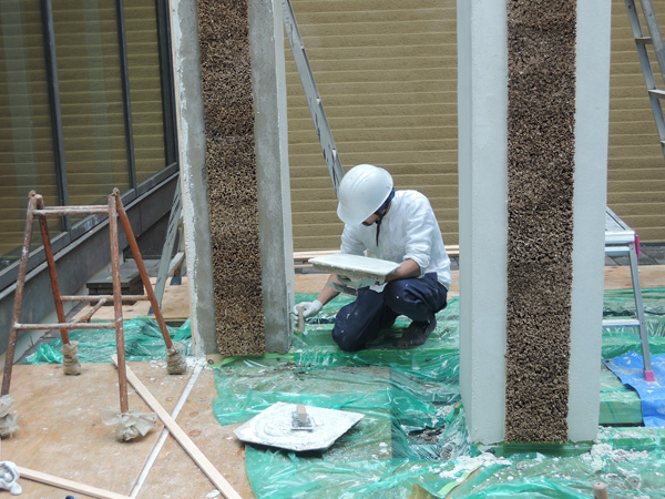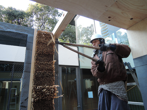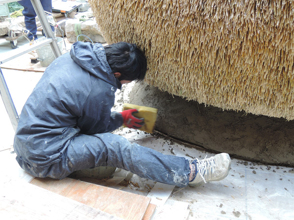 밑의 안쪽에, 도쿠라 씨가 흙을 칠해 겹칩니다. |