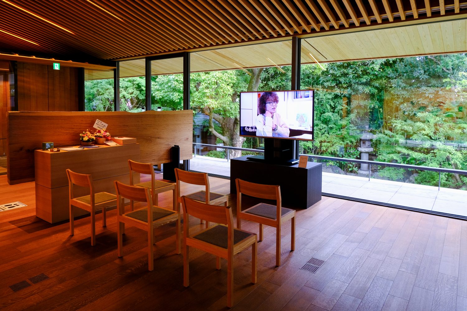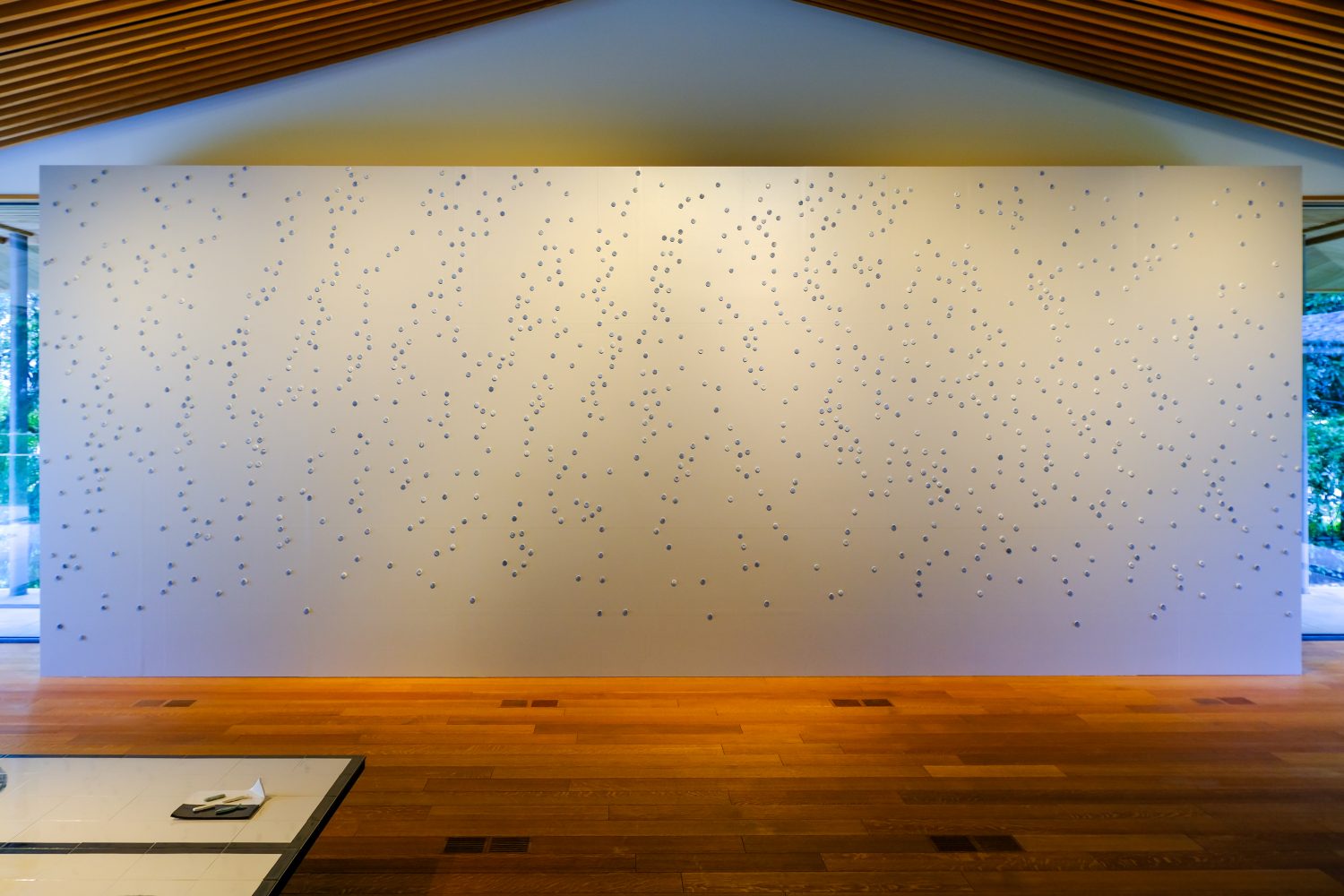 ![]() 작품은 1F 홀 뿐만 아니라 관내의 곳곳에 전시되고 있습니다.1F 테라스에는 교토의 사원 정원에서 영감을 얻은 「수면의 경치」가 설치되어 있습니다. |