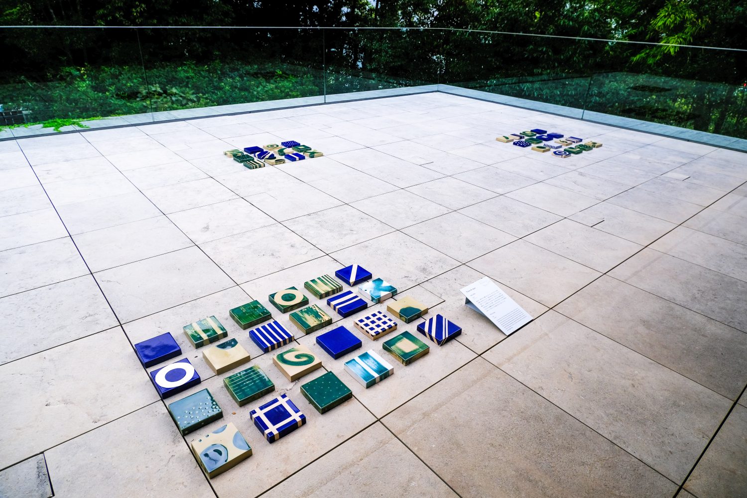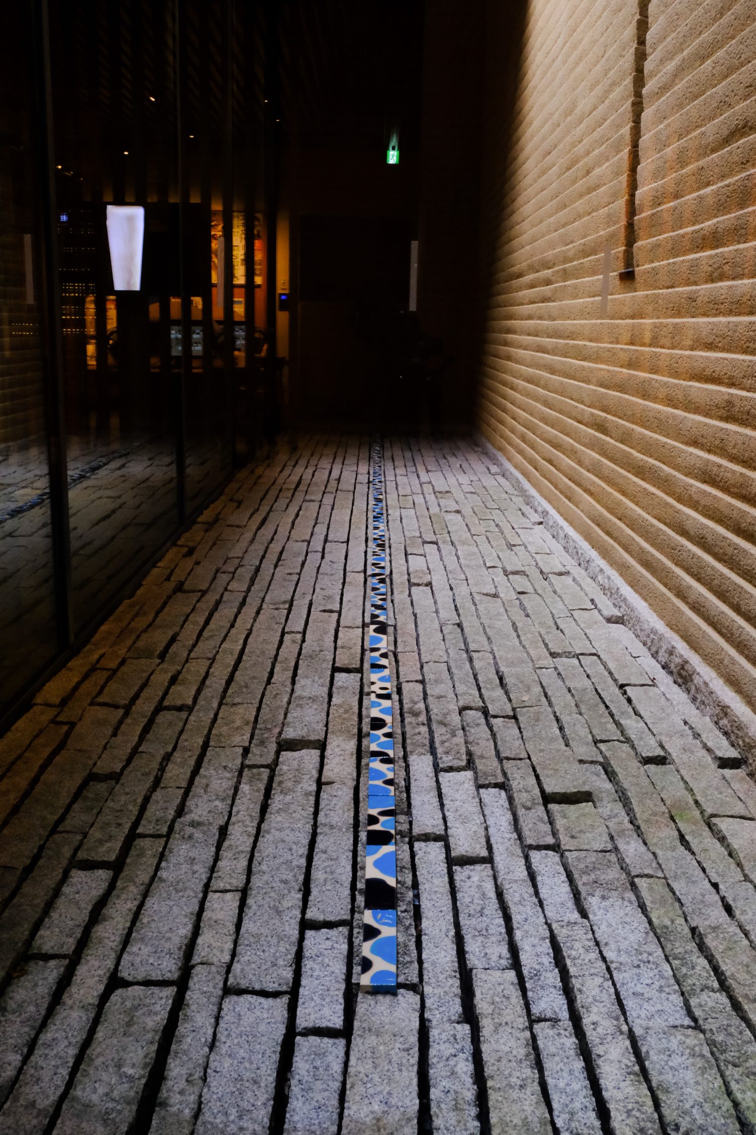 ![]() 최하층의 B2F에도 작품이 있습니다.선상에 깔린 돌조 위에 하나의 타일의 선을 그린 「모험의 길」이라는 작품입니다.모두 아즈레조를 비롯한 장식 타일로 건축 공간을 풍부하게 장식하고 있으며, 다케나카 목수도구관 건축 특유의 전시입니다.꼭 가까이서 봐 주세요. |
