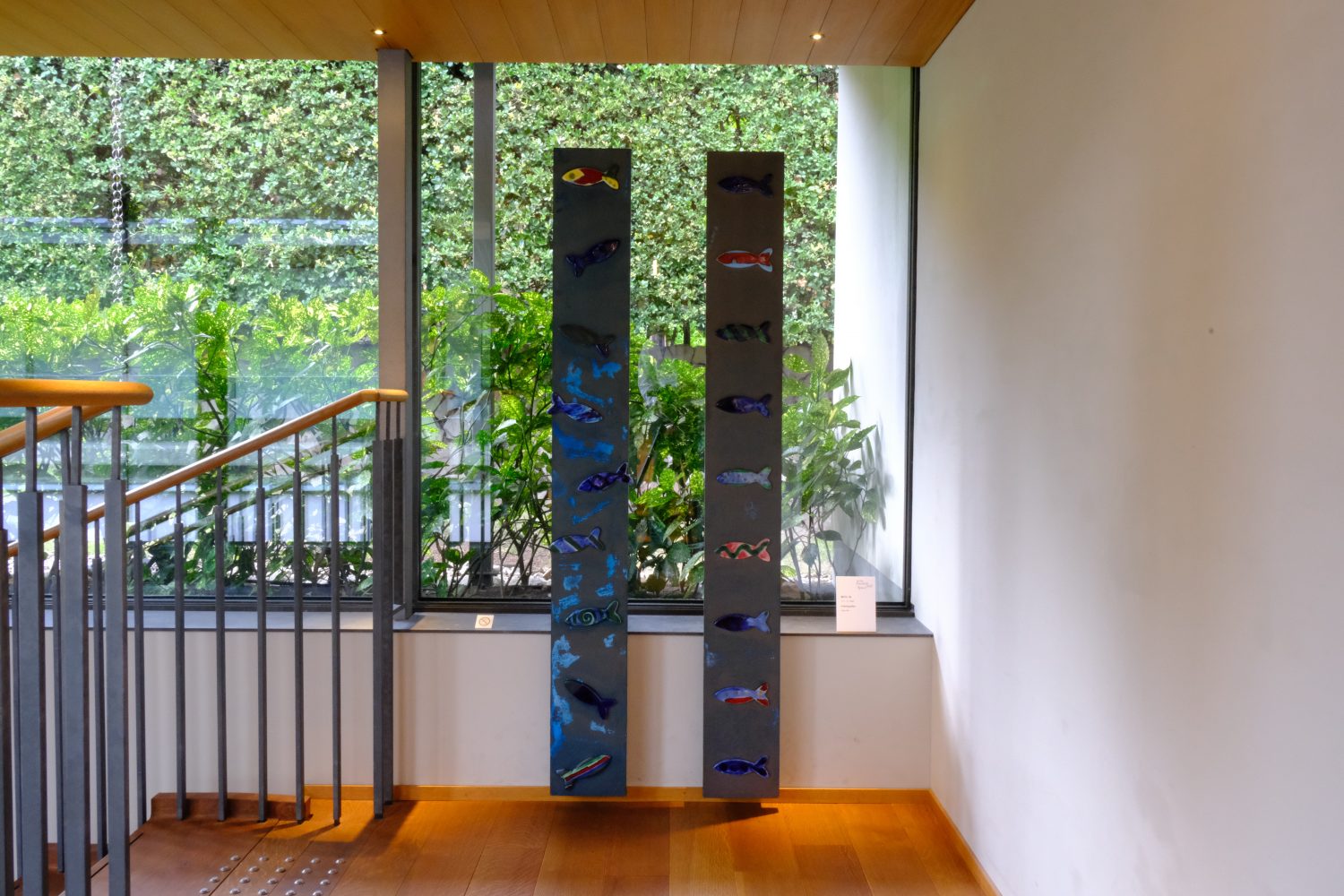 ![]() B1F에 내리는 도중에 있는 무용장에서는 사랑스러운 물고기 타일 작품 「놀고 싶은 물고기」로 마중해 줍니다. |