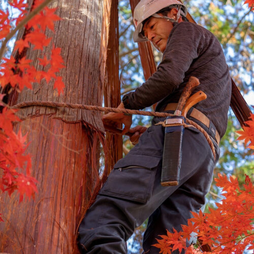【4】「히노피 채취 히와다사이슈」×장**개최종 천년 이상에 걸쳐 일본의 전통건축을 지탱해 온 「히와다부키」그 지붕재가 되는 히노피(히와다)를, 나무를 손상시키지 않고 정중하게 채취하는 전문직을 「원피사(모토카와시)」라고 부릅니다. 이 강연회에서는, 몇 안되는 현역의 원피사를 초대해, 히노피 채취의 기술이나, 산과의 마주하는 방법, 자연과 함께 일하는 지혜에 대해 이야기해 주십니다.