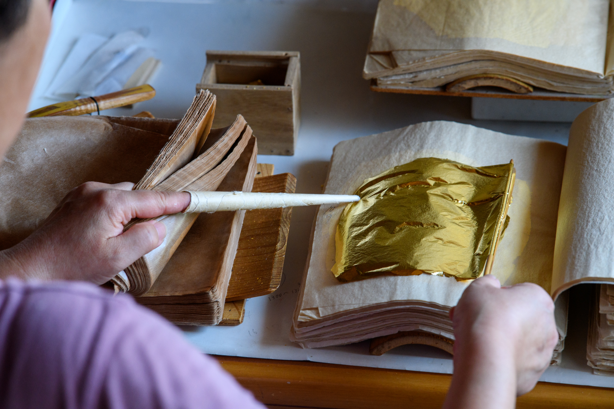 【3】「연부 금박 제조 엔츠케 킨파쿠세이조우」×장*개최종 가나자와에서 생산되고 있는 연부 금박은, 국보나 중요문화재의 수복에 반드시라고 해도 좋을 정도로 이용되고 있습니다.전통적인 기법에 의해 시간과 수고를 들여 만들어져 그 제조의 특필해야 할 점으로서 수제 일본 종이를 사용하는 것을 들 수 있습니다.이 전통적인 공정과 금박의 지금과 옛날에 대해 이야기합니다.