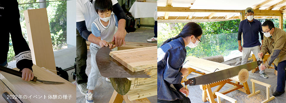 기계에 의한 제재가 주류가 될 때까지는, 마에키다이키리(다이키리)라고 하는 수 도구로 제재가 행해지고 있었습니다.지금은 좀처럼 볼 기회가 없는 마에키 톱이나 대절을 체험해 보지 않겠습니까?- 일시
