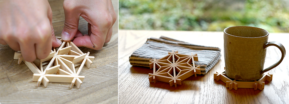 못 등을 사용하지 않고 나무를 짜고 아름다운 문양을 창조하는 조자의 기술조자에 대한 단편 영상을 보고 나서, 마노바 코스터를 만듭니다.
