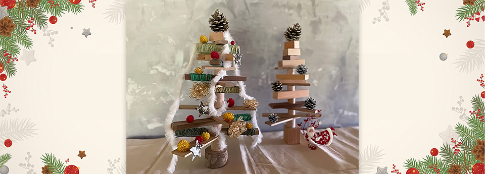 나무 판을 조립해 크리스마스 트리를 만듭니다.(작은 어린이용)