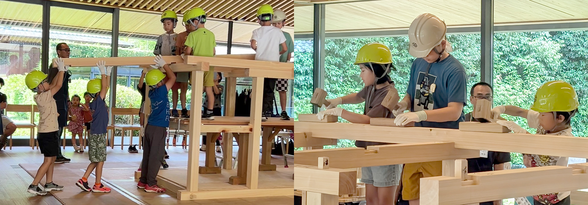 모두 함께 수건을 감아 기합을 넣어, 나무를 조합하거나 기둥을 세우거나, 한동 세워 보지 않겠습니까? 완성 후에는 법피를 입고 사진을 찍자!