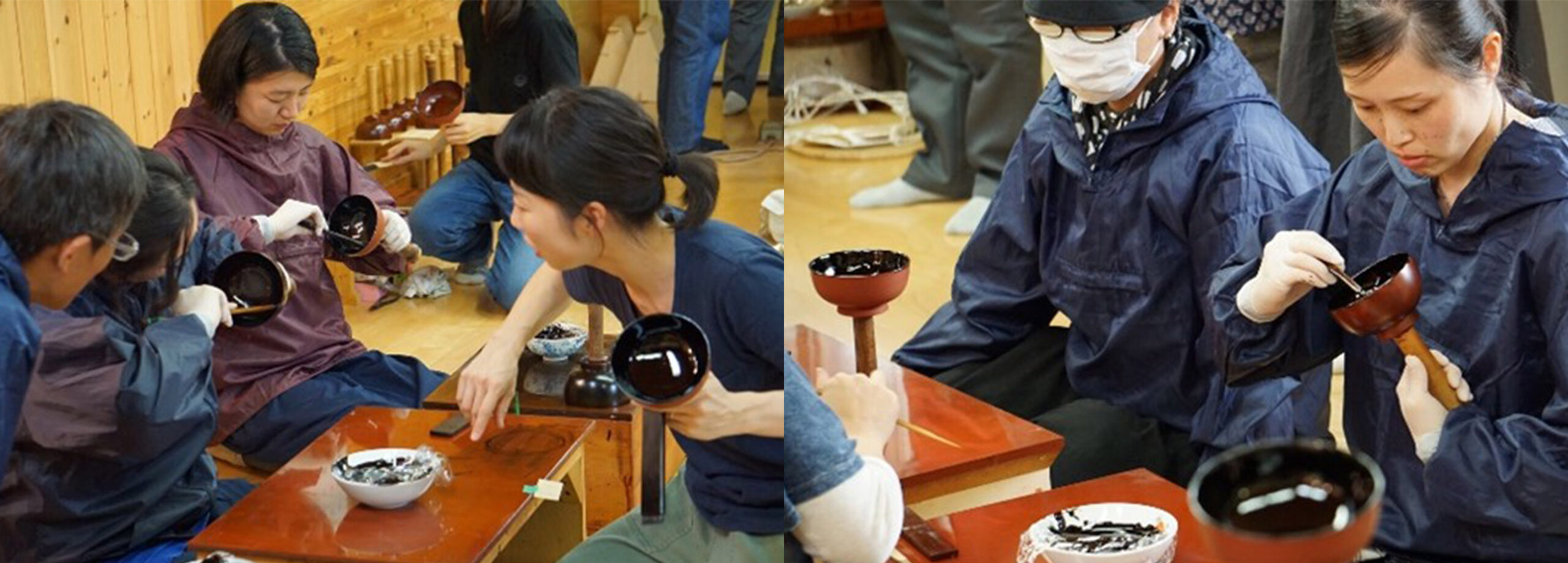 ③작은 옷의 안쪽에 정법사 옻칠을 사용해 마무리 그릇을 실시합니다(바깥쪽은 사전에 완성되고 있는 상태로부터).