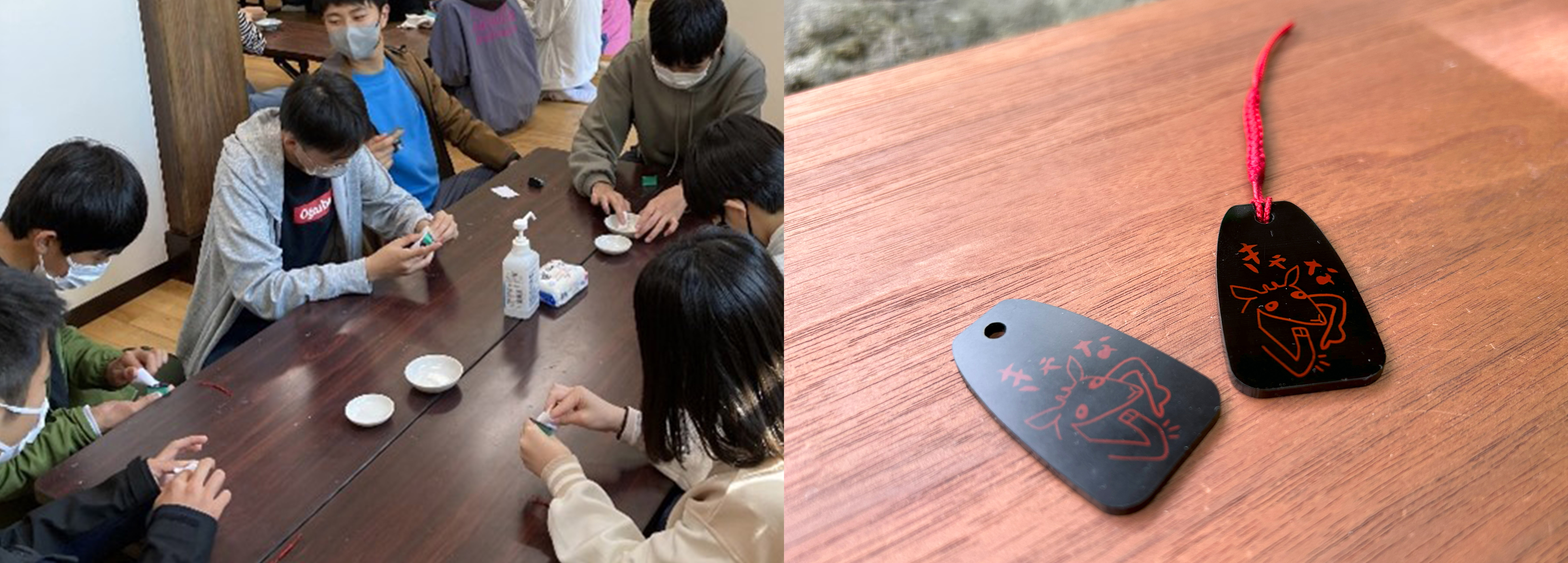 - ①옻칠·옻칠의 기술에 대한 강의(30분 정도, 칠기가 생길 때까지의 흐름:식재~칠 긁기~목지 공정~도공정, 도구 등의 해설을 실시합니다)
