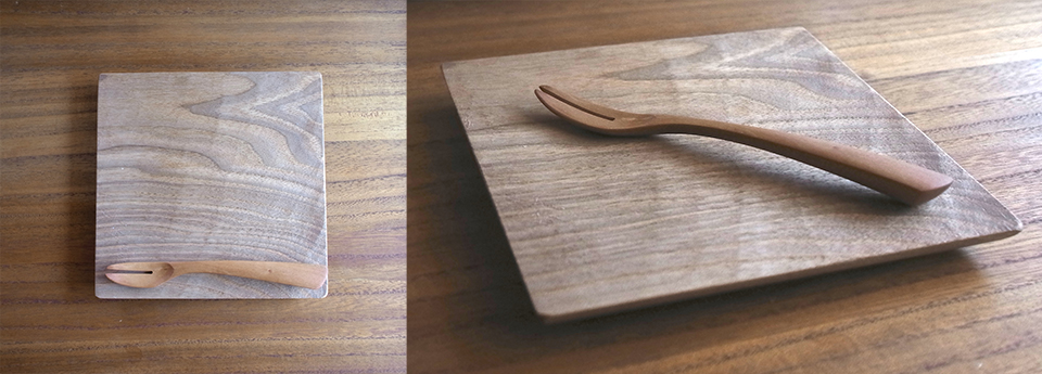 작은 냄비나 작은도를 이용해 호두나 사쿠라 등의 히로바키를 사용한 케이크 접시와 포크를 만듭니다.