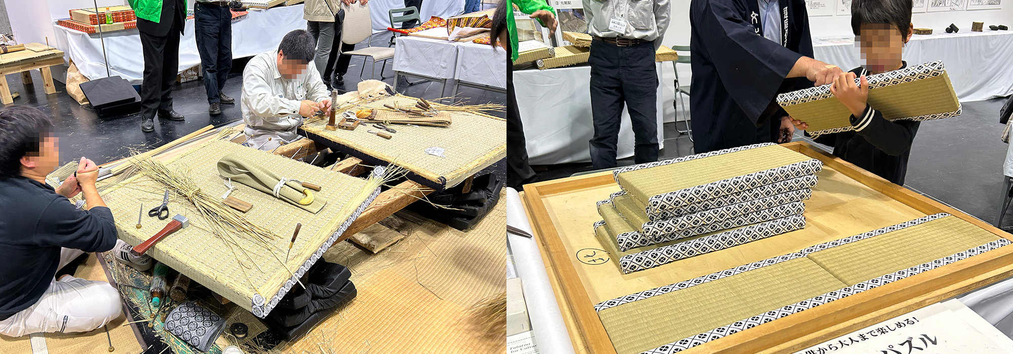 평상시 보는 것이 적은 다다미의 손수 만든 모습을, 장인이 눈앞에서 실연.소재와 도구의 사용법, 마무리 기술까지 전통 기술을 가까이서 체감할 수 있습니다.체험 코너에서는 다다미 퍼즐을 사용해 실제로 다다미를 깔는 체험도다다미를 깔는 방법에 담긴 장인의 지혜와 궁리를 즐겁게 배울 수 있습니다.어린이부터 어른까지 누구나 부담없이 참가하실 수 있습니다.