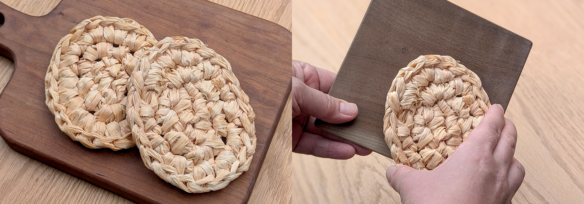 노송나무를 맸을 때 나오는 대팻밥을 짜서 에코인 주름을 만듭니다.