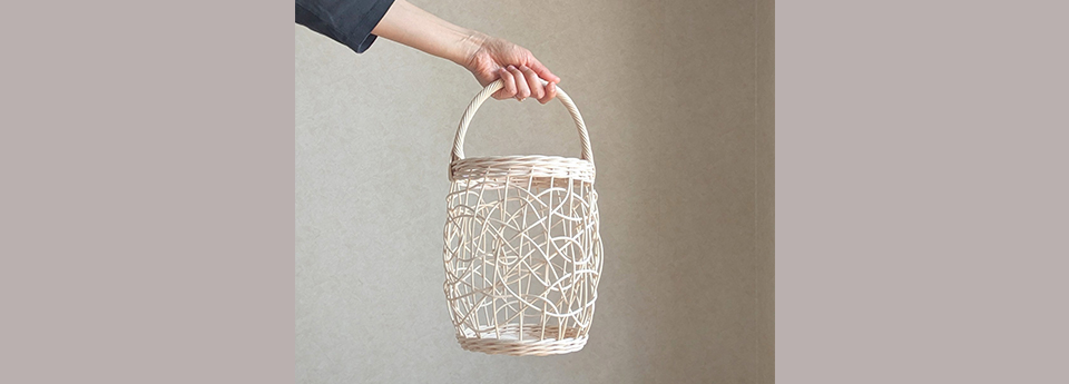 등나무를 사용하여 흐트러진 바구니 가방을 엮습니다.측면에서 손잡이까지 짜 갑니다.