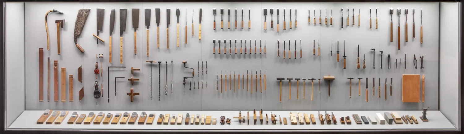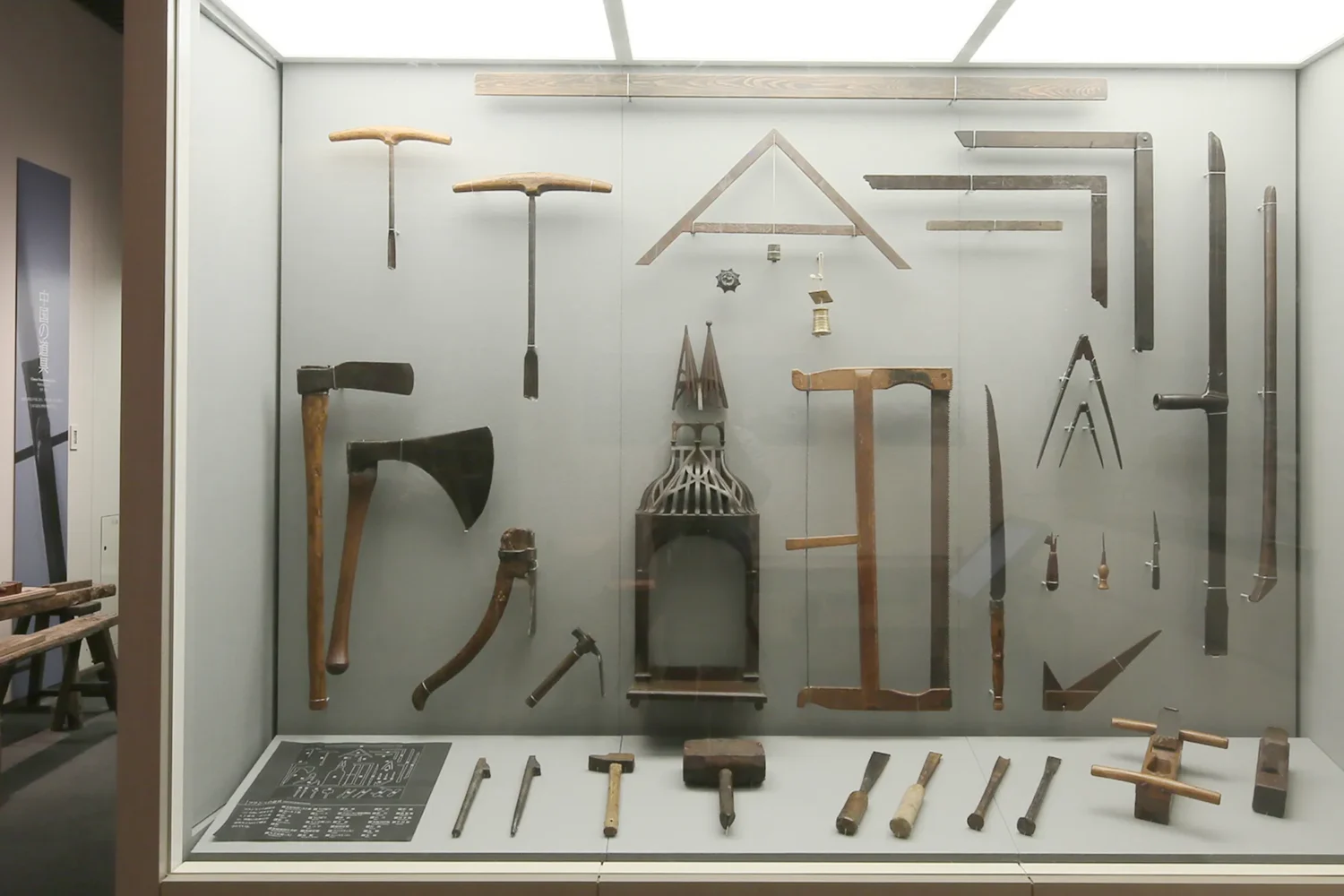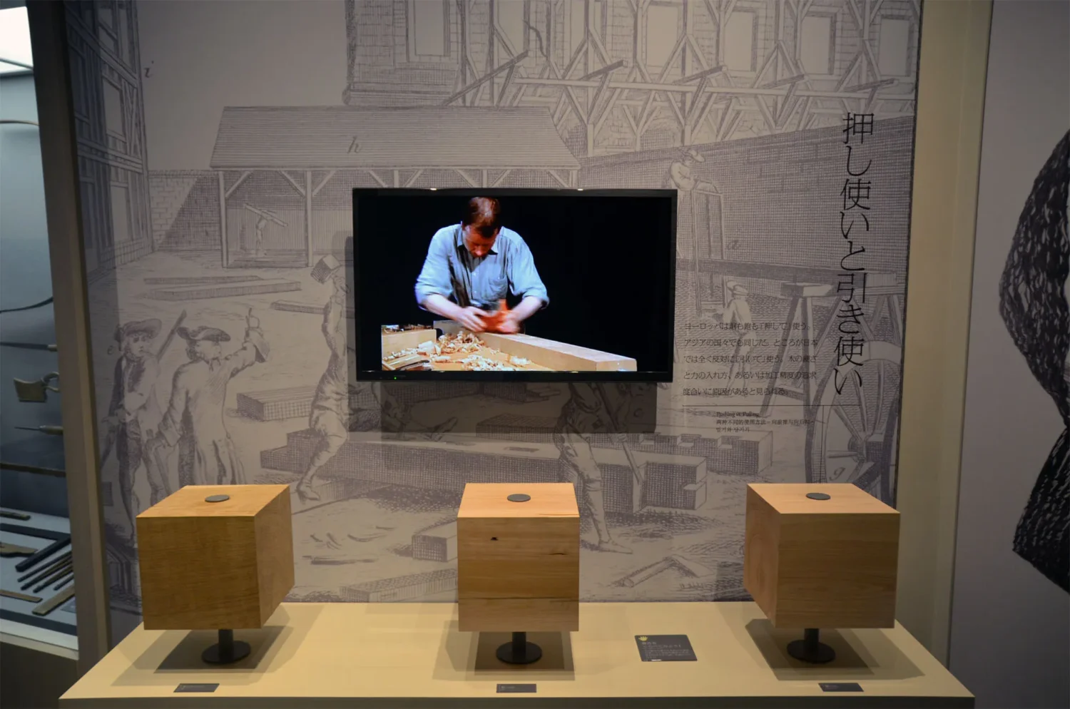 부드러운 나무를 사용하는 일본과 딱딱한 나무를 사용하는 해외에서는 목수연장의 형태와 사용법이 다릅니다.여기에서는 중국과 유럽의 목수연장을 전시합니다.도구를 사용하는 모습을 알 수 있는 영상이나 건축 모형과 함께 일본과 해외 목수연장의 차이를 알기 쉽게 해설합니다.