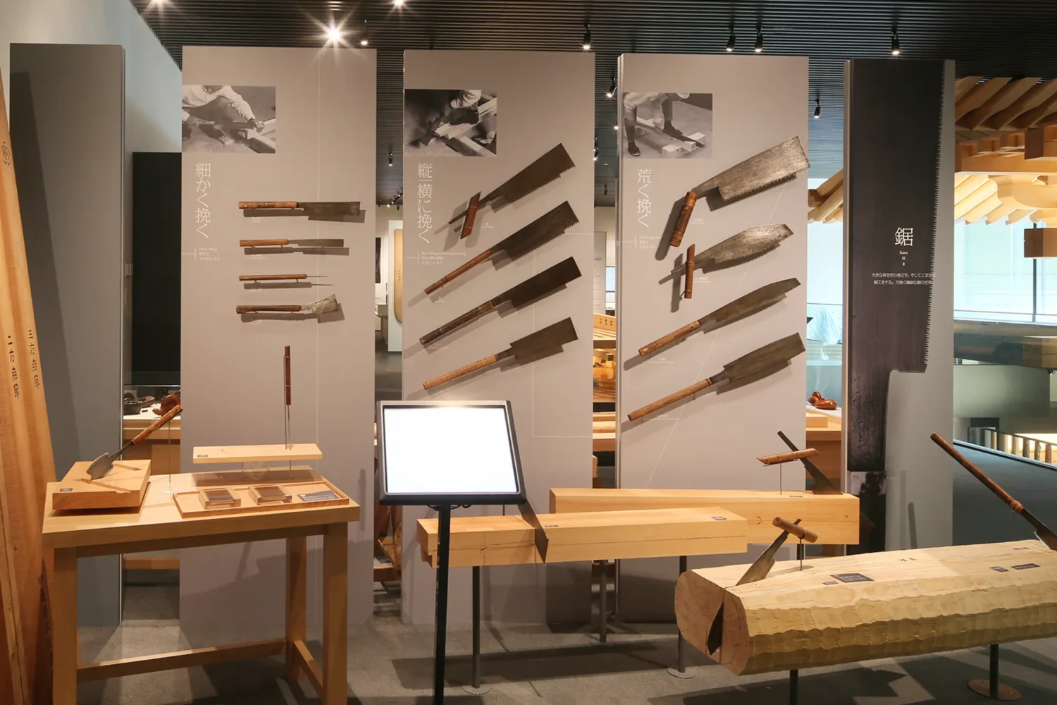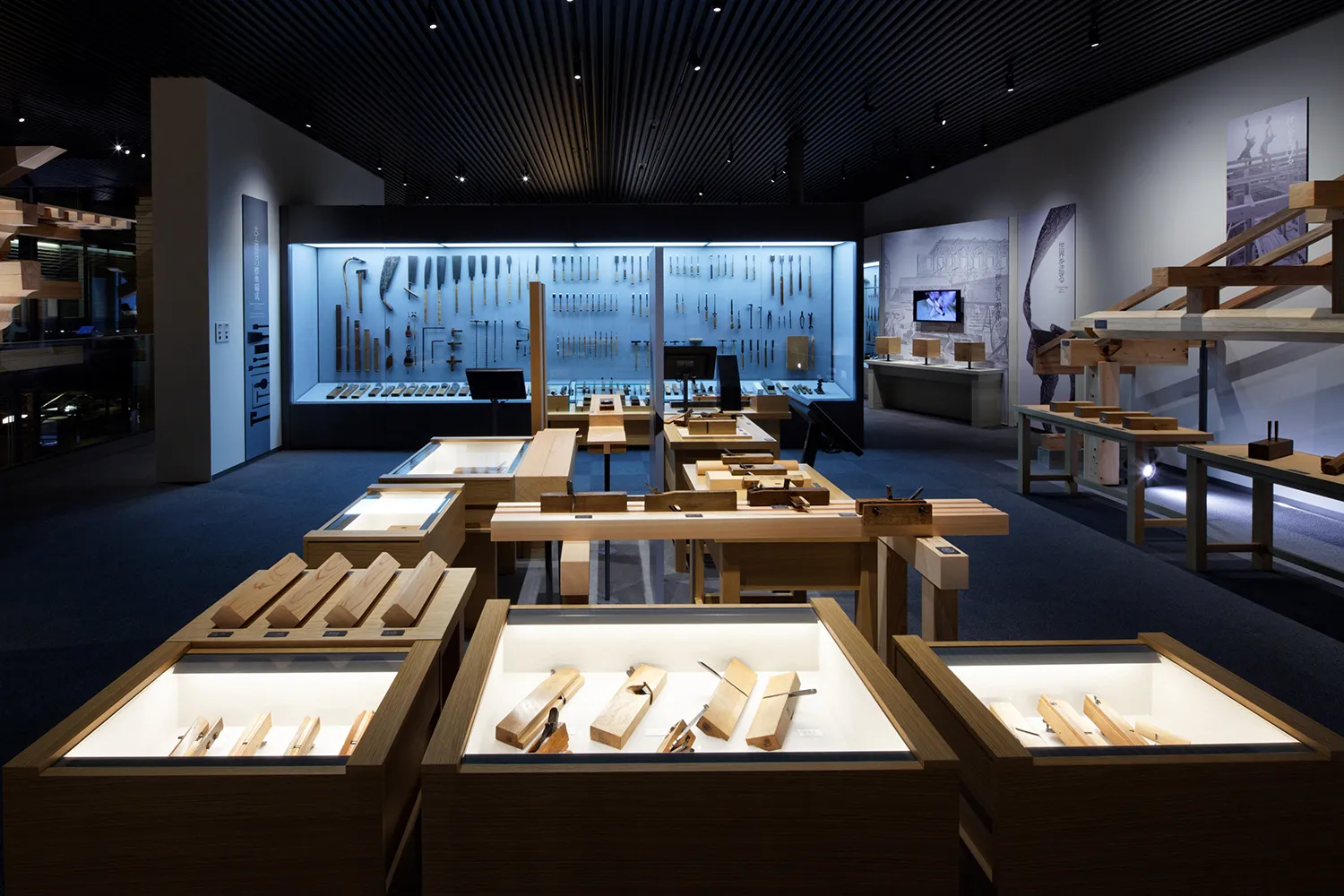 7개의 코너로 나뉜 전시에서 목수연장을 둘러싼 세계의 확산과 풍요로움을 느낄 수 있게 되었습니다.목수연장역사로의 여행도구와 손작업세계의 도구명공의 솜씨일본의 전통미모노즈쿠리의 마음을 동량 일을 통해 전하는 ‘대목장에게 배우다’.나무를 살리다.그리고 더 많은 사람에게 새로운 도구와의 만남의 장을…라고 하는 생각으로부터, 영상, 음성 가이드 시스템, 나무의 향기를 맡는, 실제로 접할 수 있는 핸즈온 전시 등 「오감에 울리는」전시가 충실하고 있습니다.