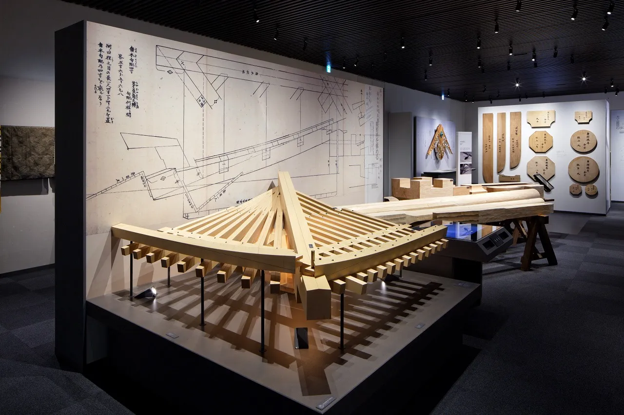 단련된 통솔력으로 다양한 장인들을 묶어 건축을 만들어 가는 목수 동량.그 기술과 마음은 현대의 만들기나 조직 만들기에 있어서도 배우는 곳이 많이 있습니다.그 매력을 실제 일을 해설한 박력의 모형이나 도면 등을 통해 소개합니다.