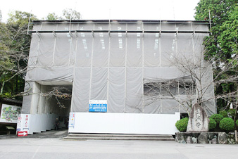 최초의 견학 장소는 원조지 다이몬(중요 문화재)입니다.지붕 교체 수리 때문에 전체가 푹 덮여 있었습니다.