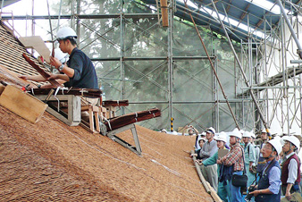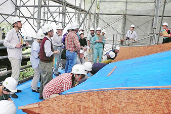 2011년도 기획전[푸쿠-풀과 나무로 만드는 지붕]의 이벤트의 하나, 「히노피 푹신의 현장 견학」을 시가현 소노죠지(미쓰이지)에서 개최했습니다.