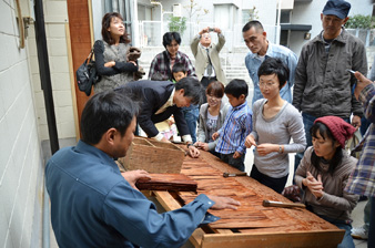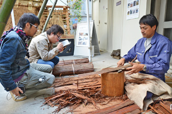 2011년도 기획전[푸쿠-풀과 나무로 만드는 지붕] 기념 이벤트 “히노피를 날아보자” 실연·체험 교실을 다케나카 목수도구관 별관 특설 회장에서 개최했습니다.