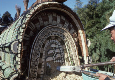 히노피 날개는 노송나무의 껍질을 거듭하는 일본 특유의 기술입니다.입목에서 채취된 수피, 초가재를 통해 가공된 히노피, 장인의 도구, 실물 크기의 지붕 모형, 영상 등을 통해, 우아한 지붕의 곡선을 만들어내는 장인기에 처합니다.특히 실물 크기의 지붕 모형은 평소 건물 위에 있어 눈높이에서는 좀처럼 볼 수 없는 지붕을 가까이서 볼 수 있습니다.박력 있는 전시가 되고 있으므로, 꼭 봐 주세요.