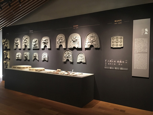 전시장 제일 안쪽은 박력 있는 기와 코너입니다.시대별로 귀와를 늘어놓고 그 전에는 귀와를 만드는 도구와 고대의 귀와를 만드는 석고형을 전시하고 있습니다.