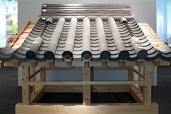 그 실물 크기의 지붕 모형, 기와 장인이 손으로 그린 기와 지붕의 원치수도, 갈 때에 사용하는 형판이나 손 도구, 실제로 날아 보는 핸즈온 코너 등을 마련해, 어떻게 기와가 날고 있는지 소개합니다.
