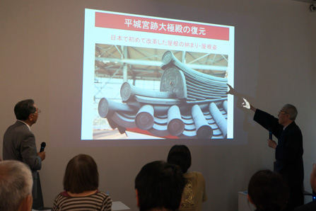 계속해서, 고대 건축의 문화재의 수리나 복원을 바탕으로 도착한, 나라 시대의 지붕의 형태와 납품에 대한 이야기가 있었습니다.
