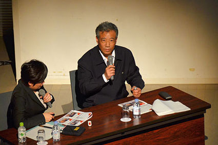 우선, 일본의 도노미야 목수로서, 오가와 산부동량에 의한 강연 「도미야 목수의 기술과 동량」입니다호류지나 야쿠시지 등의 일본의 고건축의 훌륭함, 또 자신의 수업 시대의 일화, 일본 건축의 아름다움의 궁리, 미야다이공의 구전 등에 대해서, 슬라이드를 섞어, 이야기 받았습니다.