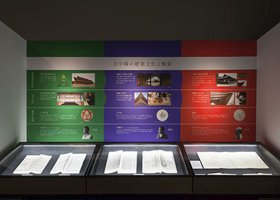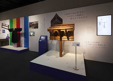 일본의 전시에서는 야쿠시지 도인도의 1/2 모형을 소개.벽면에는 도면이나 형판 외, 니시오카 조이치 동량이 쓴 구전도 전시하고 있습니다.