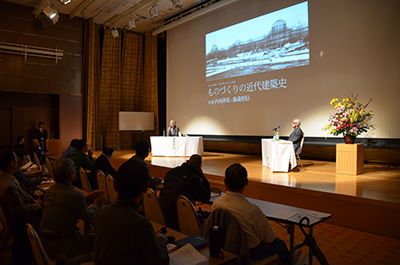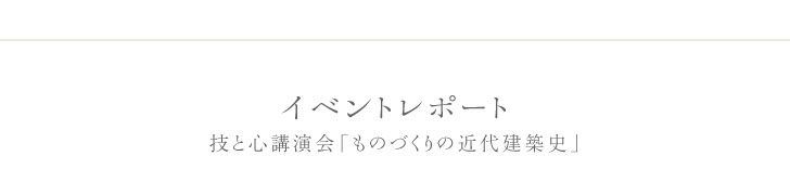 11월 8일(일), 우치다 쇼야씨·후지모리 테루노부씨를 초대해, 올해의 「기술과 마음」강연회를 개최했습니다.타이틀은 「모노즈쿠리의 근대 건축사」.본 박물관에서 개최중인 기획전 「근대 건축 만들기의 도전」전을 기념해, 연구자로서도 건축가로서도 활약하는 두 사람에게, 근대 건축을 기술·장인의 면에서 말해 주자는 기획입니다.