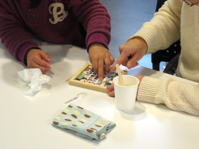 그리고 완성된 디자인을 생각하고 타일을 늘어놓습니다.구상적인 디자인으로 할까 기하학적 모양으로 할까, 색을 갖추는지 변화를 붙이는지 등, 각각 생각해 타일의 배치를 결정해 갑니다.이 작업은 어른이 시간이 걸릴 것 같습니다.