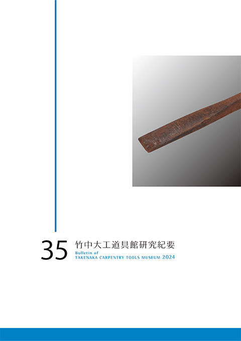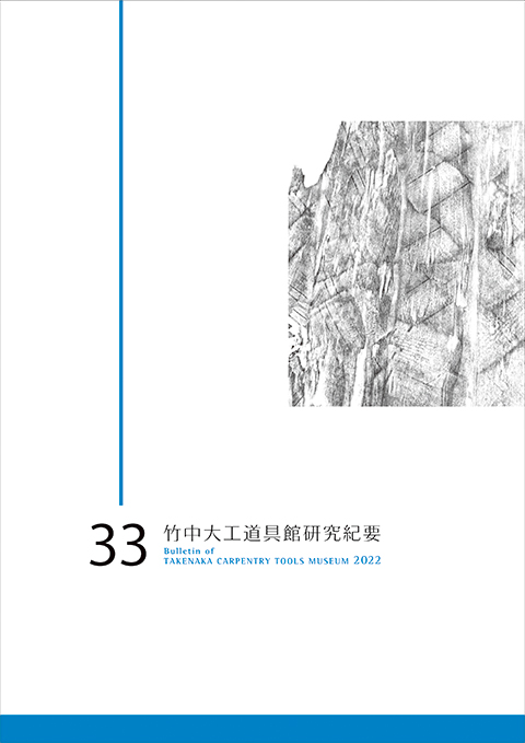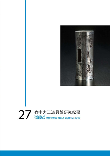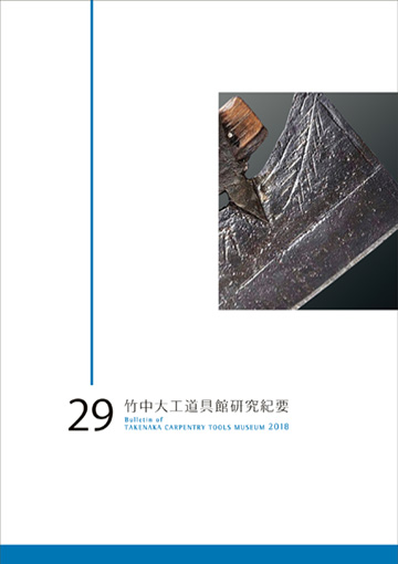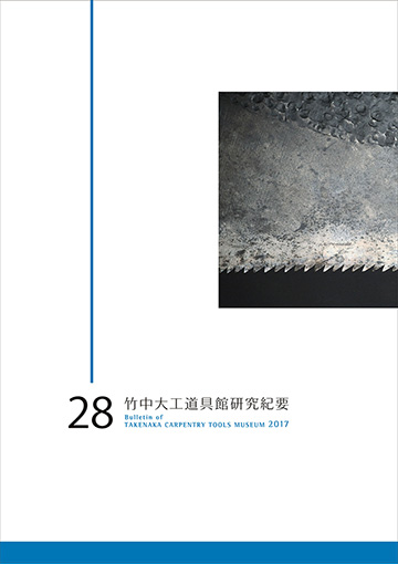 『다케나카 목수도구관연구기요』에서는 목수연장 및 관련 분야에 관한 논문과 자료를 게재하고 있습니다.종이판은 본 박물관 뮤지엄 숍에서 구입하실 수 있습니다.디지털판은 제1호부터 문부 과학성 운영의 학술 전자 저널 사이트 「J-STAGE」에 등재하고 있어 PDF를 다운로드해 보실 수 있습니다.