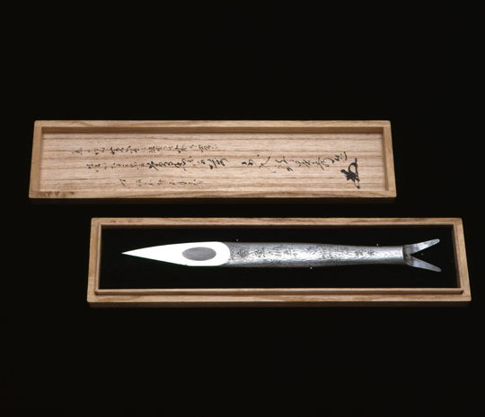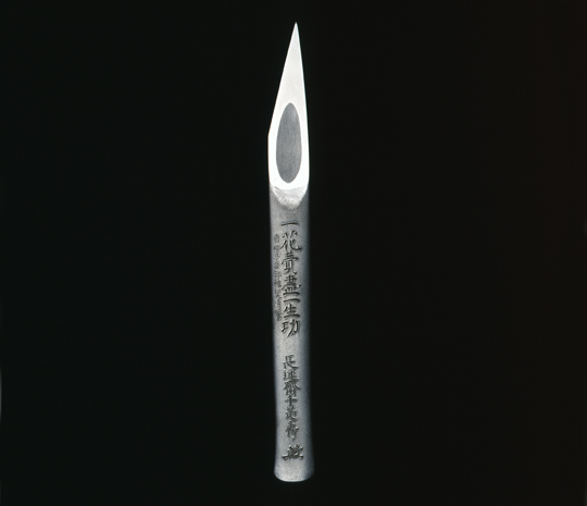 지요 쓰루 고레히데 (일) | 본명 가토 히로시1874년에 태어났다.아버지는 요네자와 번카미스기 가문을 섬긴 도장·2대째 나가운사이 쓰나토시.1876년 폐도령에 의해 도대장장에서 도구 대장장이로 전향한 숙부 이시도 슈에이에게 11세에 입문.선인의 기술을 정성껏 연구하고 명문 도장가()인 문화적 소양이 맞물려 수많은 걸작을 낳는다.1957년 84세의 나이로 사망했다. 촬영:후지와라노 마사시 | ||||||||||||