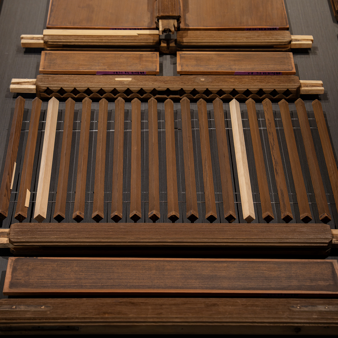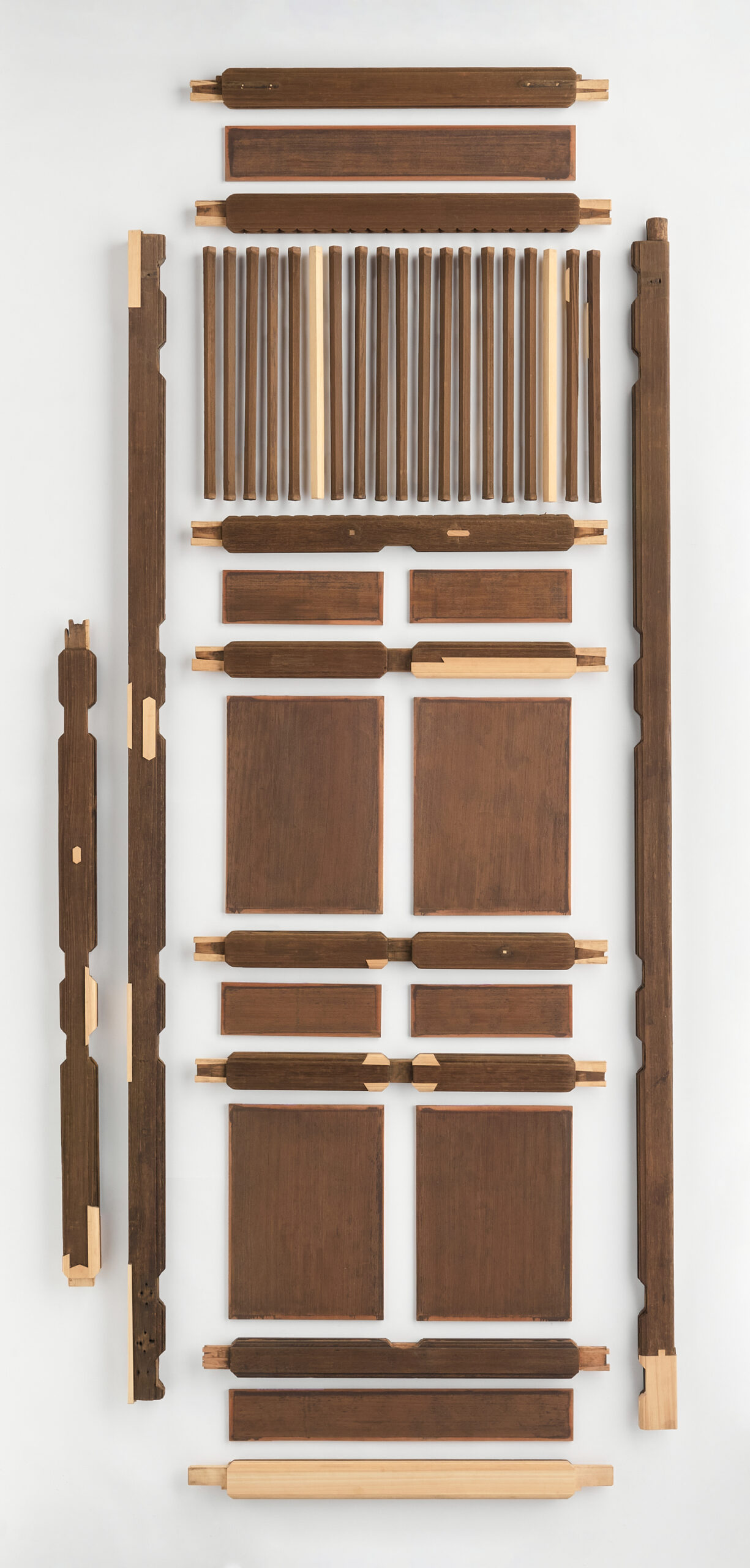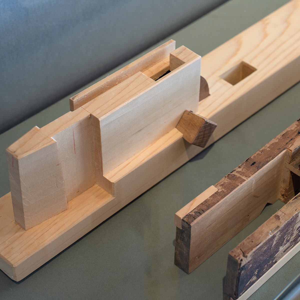 본전에서는 해체함으로써 보이는 창호의 내부 구조와 손상된 재물을 보수하고 기능을 재생하는 수리기술에 착안해 유네스코 무형문화유산 ‘전통건축공장의 기술’을 구성하는 ‘창호 제작’의 전통기술에 깊이 수술합니다.보이지 않는 곳에야말로 일을 집중시키는 창호의 진수를 봐 주세요.