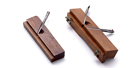 가는 도랑을 깎는 데 사용한다.필요한 도랑폭의 길(홈이 되는 부분을 깎는 냄비날의 폭과 같은 만큼 튀어나온 하단의 부분)이 붙은 대에, 나사로 간격을 조절할 수 있는 잣대가 붙어 있어, 구조가 약간 기계적으로 보이기 때문에, 이렇게 불린다자를 조절하는 것으로, 도랑의 위치가 정해진다.칼날 폭은 5~5분 정도까지가 일반적이다.기계식의 것이 생기기 전까지는 작은 구멍돌이라고 불렸다.