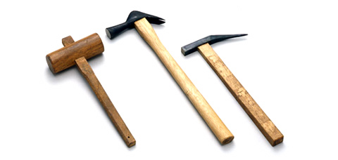 왼쪽부터 나무망치, 가틀 망치, 기와야쓰치