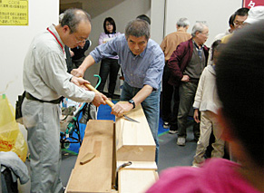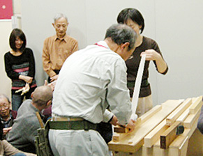 기타무라 기능원의 해설과 실연 후, 참가자 여러분에게도 도노미야 목수의 기술을 체험해 주셨습니다.