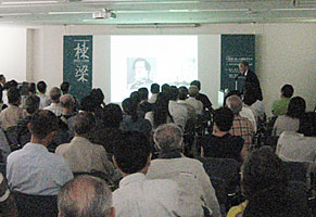 다케나카 목수도구관 아카오 관장으로부터, 개관 25주년 기념 순회전을, 전국 4 회장에서 개최하는 것, 삿포로에서의 개최가 도쿄에 이어 2 회장째인 것, 그 기념 강연회에 다수의 분들이 참석해 주신 것에의 감사의 말 후, 2명의 강사의 약력이 소개되었습니다.